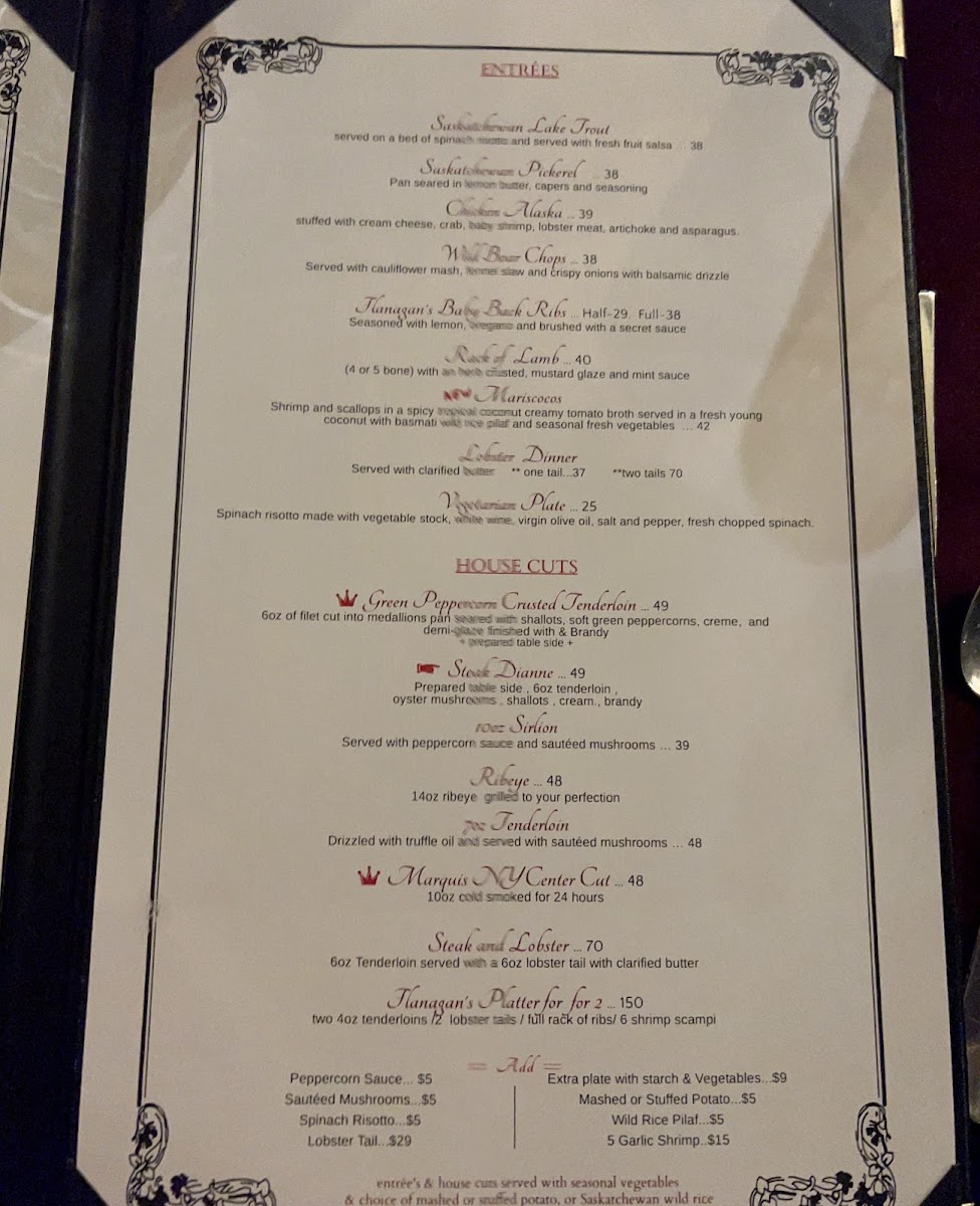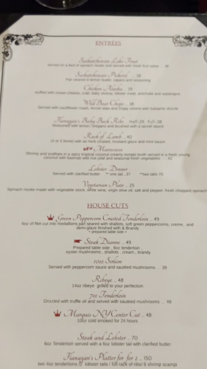 Welcome to Flanagan's Steakhouse, a culinary gem nestled in Saskatoon. With a charming ambiance and attentive service, this steakhouse delivers an unforgettable dining experience. The menu highlights include expertly prepared dishes such as the Caesar salad and the BBQ Bison Short Ribs, presented tableside to elevate the theatrical dining experience.