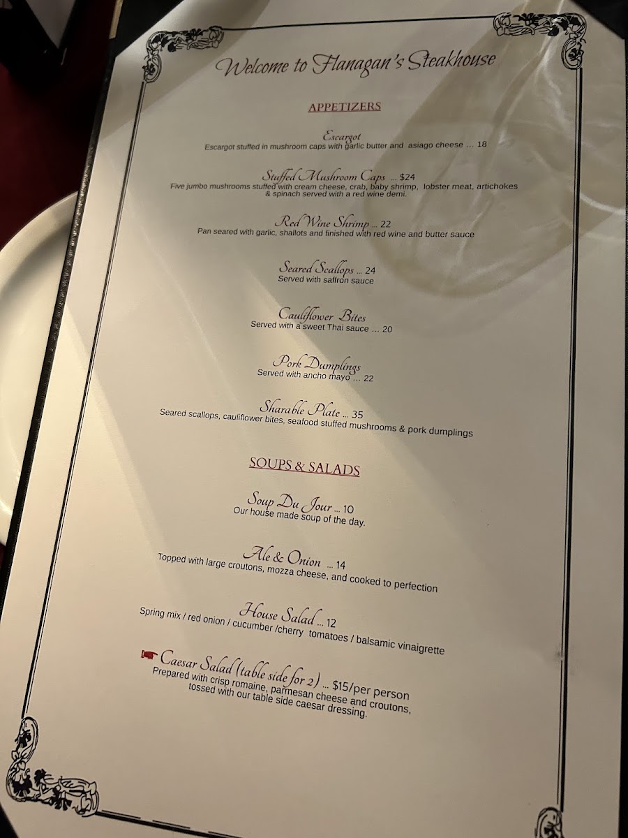 Whether you're celebrating a special occasion or simply looking for a delightful meal, Flanagan's promises a great atmosphere, excellent food, and service that makes you feel cherished. This is surely a must-visit restaurant for steak lovers and food enthusiasts alike!